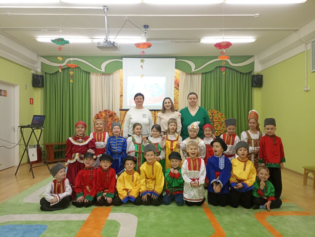 Выражаю благодарность воспитателям и музыкальному руководителю за проведённый праздник ко Дню народного единства в садике "Росток" группы "Пчелки". Здорово, что каждый ребёнок был одет в национальный костюм из костюмерной садика