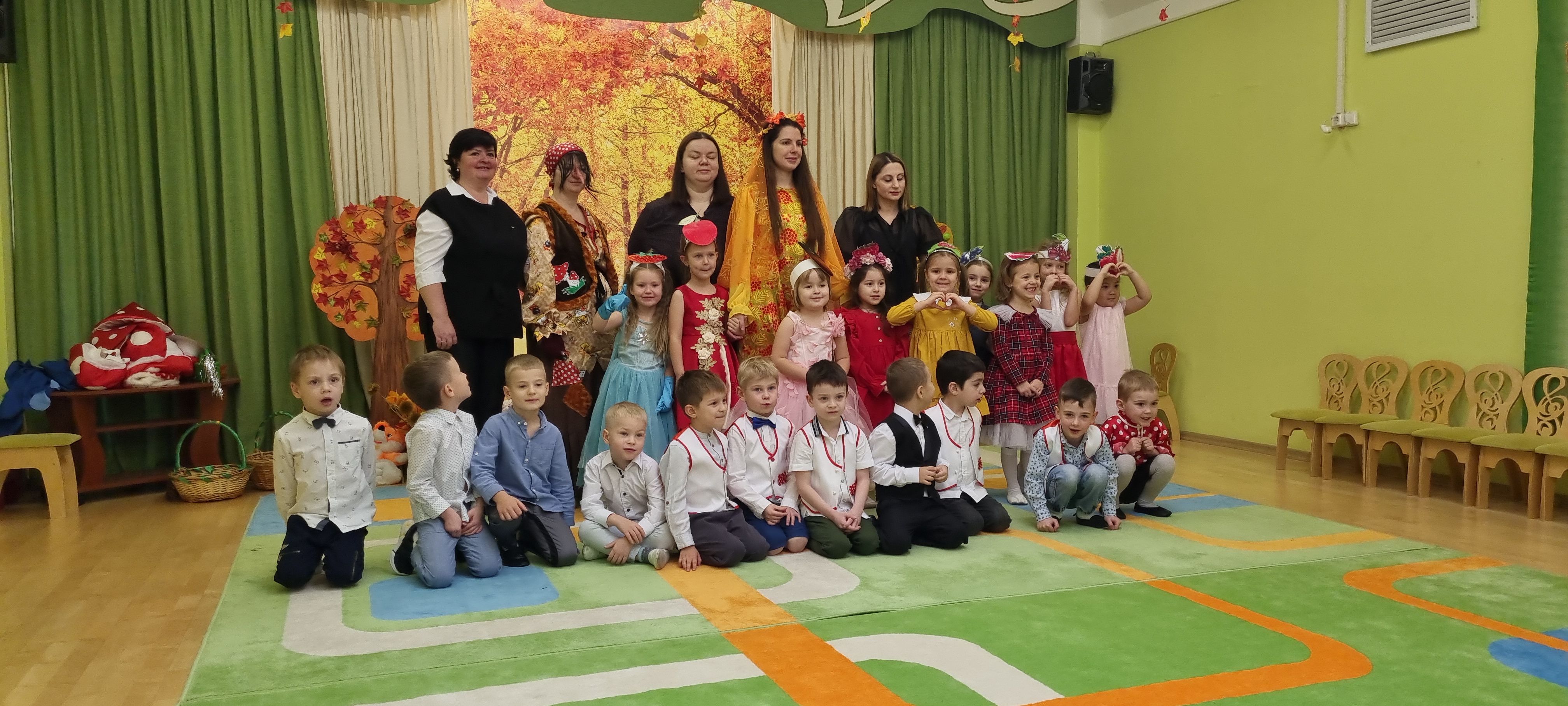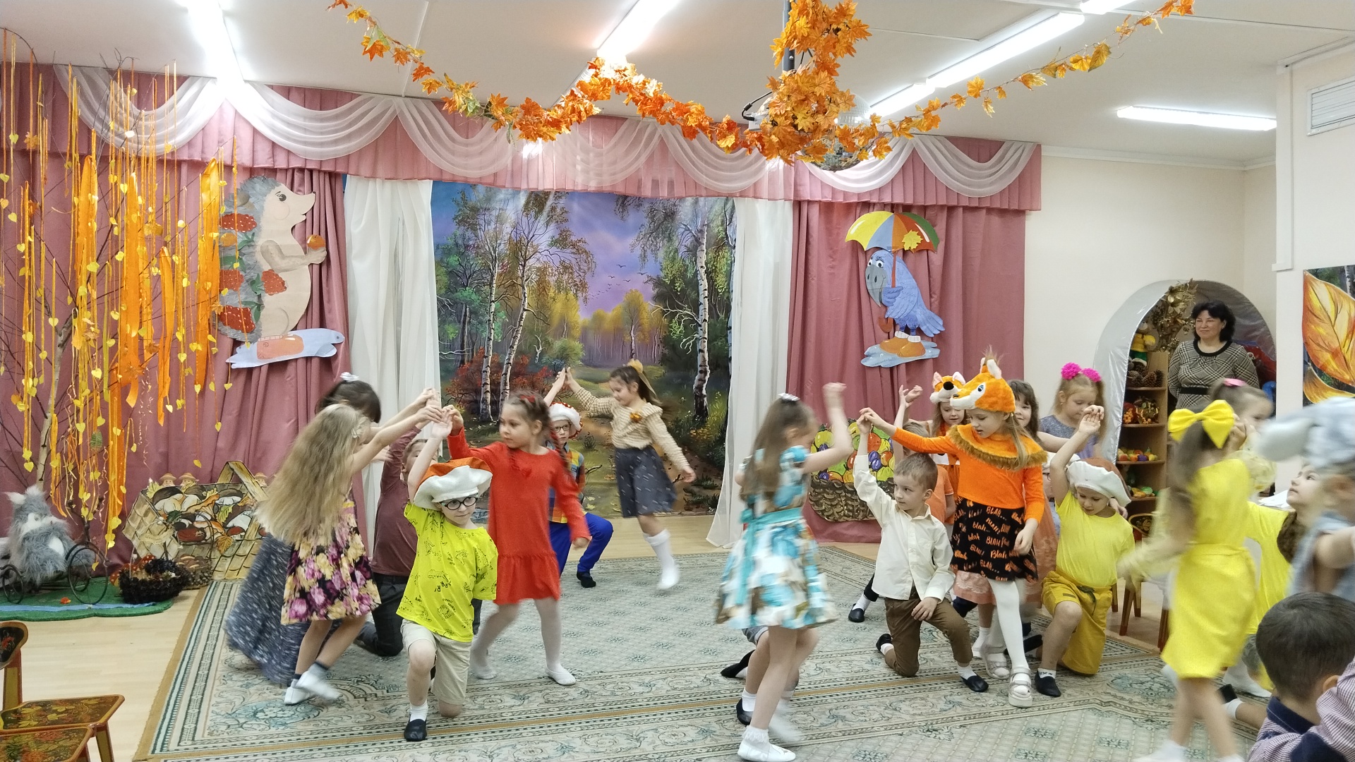 Сегодня, 2 ноября, состоялся долгожданный праздник Осени в нашей группе д/о "Умка". Денёк выдался пасмурный и дождливый, не располагающий к веселью, танцам и шуткам, а скорее - к сладкому сну под тёплым одеялом. Но кто сказал, что осень - грустная пора, заблуждался! Никакая непогода не смогла испортить наш праздник. И за это спасибо нашим деткам, музыкальному руководителю Елене Валерьевне и дорогим воспитателям: Марине Владимировне и Ольге Владимировне. Ребята с утра пришли нарядные и готовые к празднику. Они своим выступлением подарили всем гостям радость, улыбки, смех и отличное настроение. А после праздника, хотите верьте, а хотите - нет, перестал идти дождь, и небо прояснилось. Сценарий концерта был очень интересный, дети играли роли лесных животных, грибочков, сказочного осеннего леса, исполняли сложные в музыкальном плане - песни и в ритмическом плане - танцы, что говорит о том, что наши мальчишки и девчонки уже заметно подросли, многое умеют и желают продолжать учиться совершенствовать свои способности. Также в течение праздника ребята играли, читали стихотворения об осени, разыгрывали шуточные сценки, за что благодарим нашего музыкального педагога и воспитателей, потому что смена деятельности очень важна в дошкольном возрасте. Атмосфера праздника была тёплой, дружелюбной, родители поддерживали деток аплодисментами и возгласами "молодцы". Спасибо нашим педагогам за то, что они с каждым годом всё больше и больше взращивают в наших детях артистизм. Мы с нетерпением будем ждать следующего праздника!